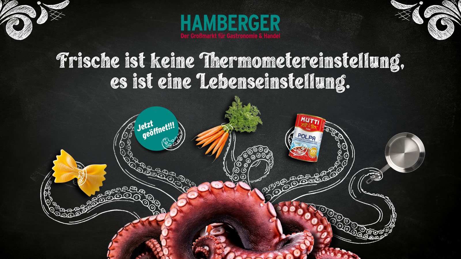 Der Großmarkt für Gastronomie und Handel startet endlich auch in Frankfurt. Sie sind Profi aus Gastronomie, Hotellerie oder Food-Handel? Dann freuen wir uns, Sie als Kunden begrüßen zu dürfen. Bei uns treffen Sie auf Menschen, die als Koch gearbeitet haben oder in einem Restaurant oder Hotel beschäftigt waren. Profis, die Sie jetzt bei Hamberger professionell beraten. Und die über 45.000 Artikel (Food und Non-Food) für Sie bereit halten.